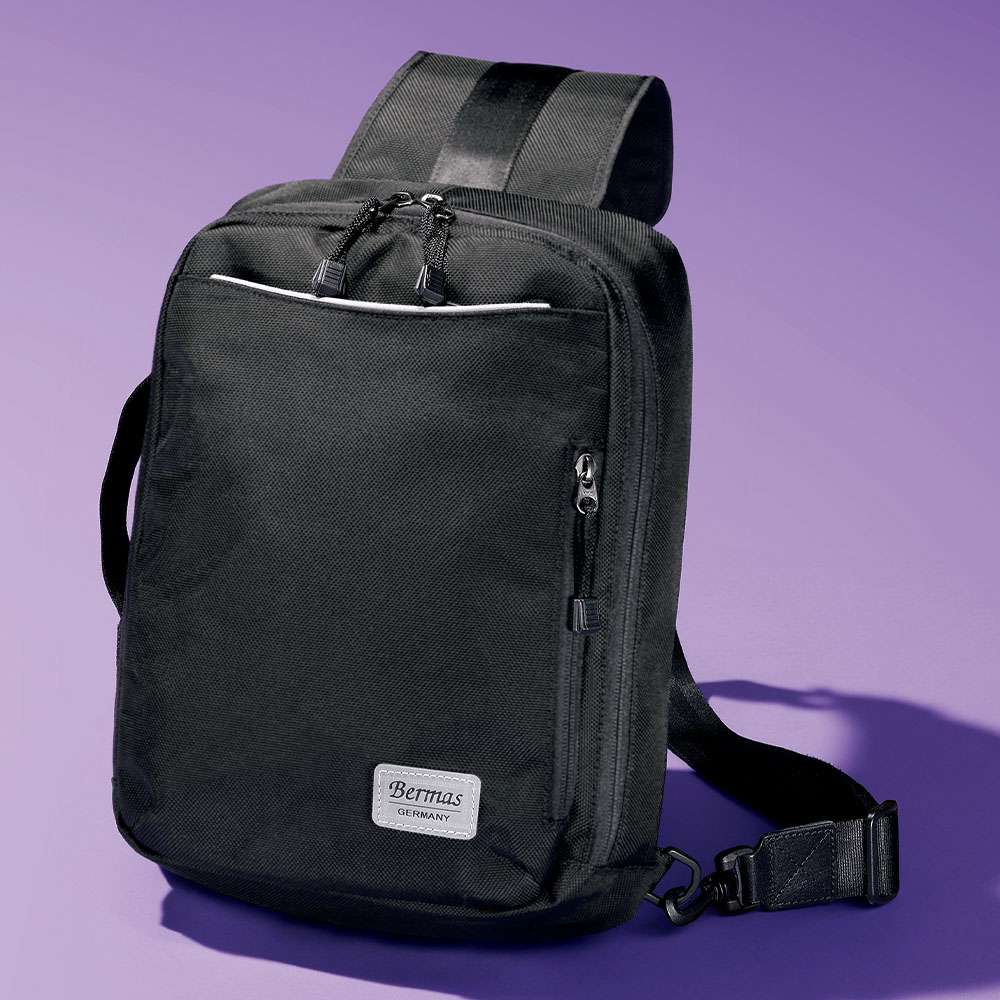 ボディバッグ風の『ビジネスワンショルダーバッグ』は、13インチまで収納可能なPCポケットを主室に搭載。ストラップを背面に収納すればクラッチバッグのように使える2WAY仕様だ。