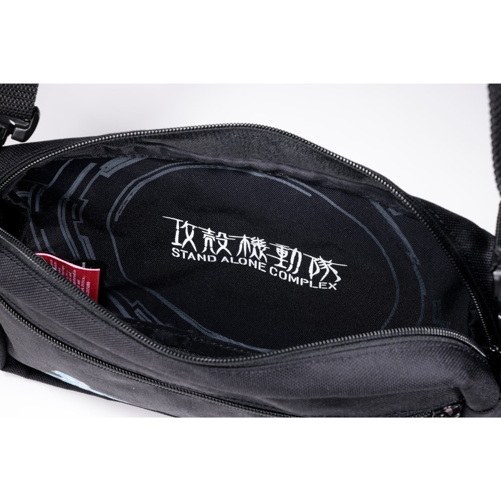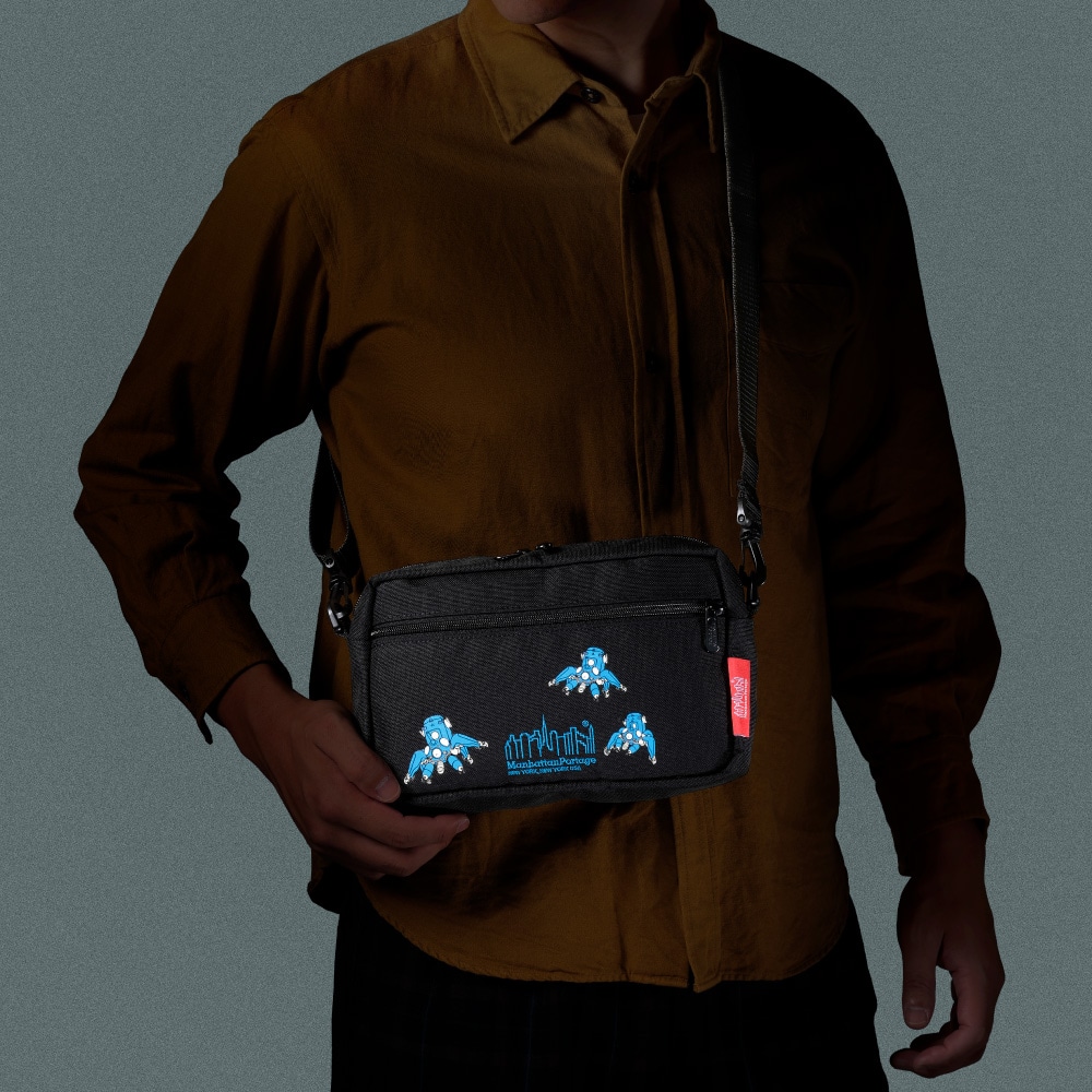 今回のコラボレーションでは、表面に『攻殻機動隊S.A.C.』に登場する思考戦車・タチコマの描き下ろしデフォルメイラストを特別にプリント。さらに、Manhattan Portageの代名詞である赤いネームタグも、ブランドの象徴である「スカイラインロゴ」をタチコマと同系色の刺しゅうで表現した特別仕様だ。
