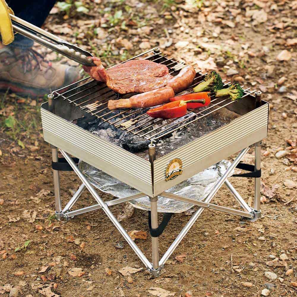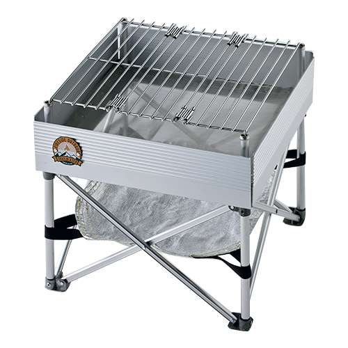 小さくなったとはいえ、一般的なソロキャン用焚き火台よりは火床が広いので、長い薪をくべることができるし、火床の中で火力の強いところと弱いところを分けることができる。火床は平らなので、炭をかさ上げする必要もない。また、素材がメッシュなので、空気がよく入って燃焼が促され、煙が出にくいのも特徴だ。さらに前作では別売りだったグリルが付属。熾き火や炭火でまったりBBQを楽しむのにおすすめ。