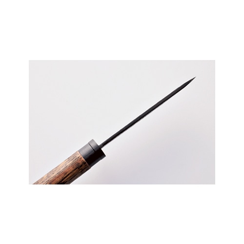 全長24.5cm、刃長12cm、刃厚0.4cm、150g。ブレードは土佐オリ ジナル白鋼。ハンドルは木。両刃。木製ケース、牛革バンドが付属。日本製。※正当な理由なく刃物を携行することは違法となります。