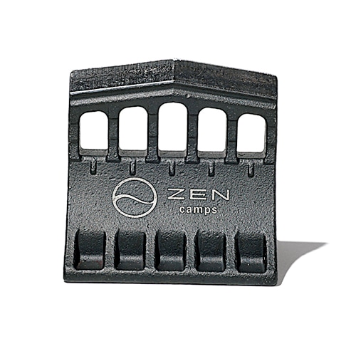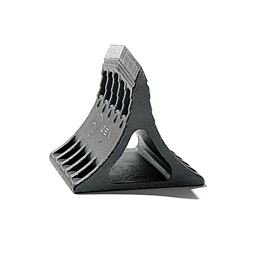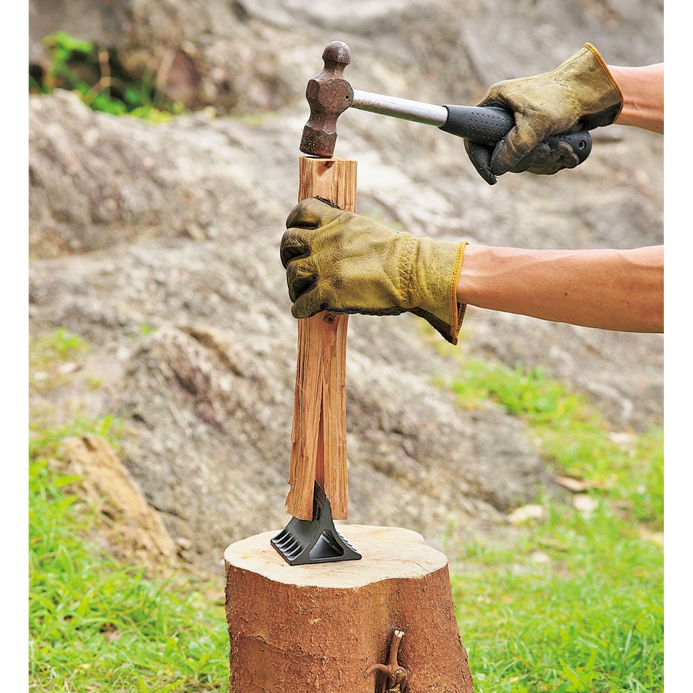 置き型のくさびは、重く鋭い鉈を振り下ろさなくていいから、鉈を怖いと感じる人でも気軽に薪を割ることができる。とくにこの「刃冠」は、割りやすい工夫がてんこ盛りだ。刃は、中央を高くした山型で、しかも鍛造したあとにしっかりと研いでいるので、薪が食い込みやすい。また、横から見ると末広がりの形のため、食い込むほどに広がって割れていく。食い込んだ薪は「かえし」によって固定され、上に跳ね返りにくいから危なくない。安定感を損なわない程度に肉抜きをして軽量化も図られている。収納袋付きで、持ち運びやすいサイズ感も魅力。焚き火の相棒に!