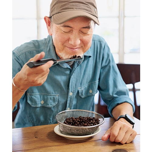 生豆を投入したら着火してハンドルを1秒1回転のペースで回す。10分くらいすると「ポンッ、ポンッ」と最初のはぜる音(1ハゼ)が聞こえてくる。酸味の利いた浅煎りが好みなら1ハゼ終盤で消火してでき上がり。さらに、13分くらい熱すると、音が「ピチ、ピチ」に変わる(2ハゼ)。2ハゼ終盤で苦みの利いた深煎りになる。あたりには濃厚なコーヒーの香りが立ち込めて、気分はもうカフェマスター!
