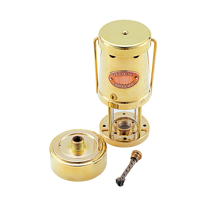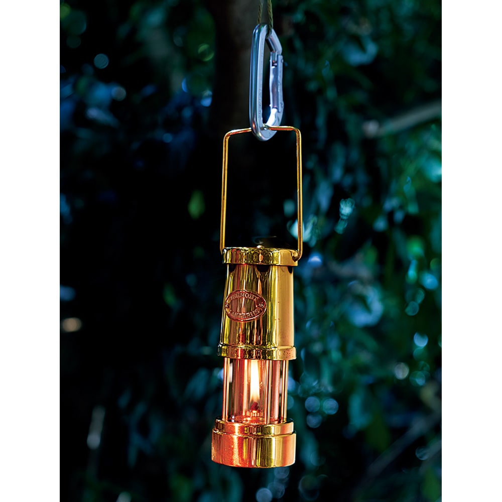 古き良きアメリカのランタンを、ハンドメイドで現代に蘇らせた”バーモントランタン”シリーズ。なかでも人気なのが「マイナーズランプ」。160年前の炭坑で使われていたモデルの再現で、設置場所を選ばないスリムな形が特徴だ。これに待望の小型版が登場。直径は9から7cmに、高さは23から18cmになって携行しやすくなった。タンク容量は135から50mlに減少。燃焼時間は6時間とやや短いが、日没から就寝までなら十分もつ。芯は太いので明るさは変わらない。炎のゆらぎと真鍮の輝きをぜひご堪能あれ。