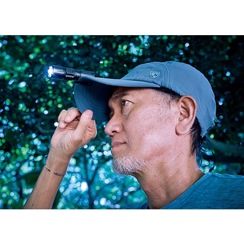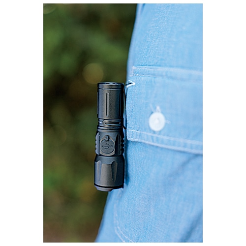 機能も海の王者に恥じない充実ぶり。光はワイドとズームを切り替え可能だから手元も遠くも自在に照らせる。クリップはリバーシブルタイプで、帽子やポケットに差せて、常に両手を空けられる。底はマグネット内蔵だから逆さや水平にも固定できる。バッテリーは便利なUSB充電式だ。