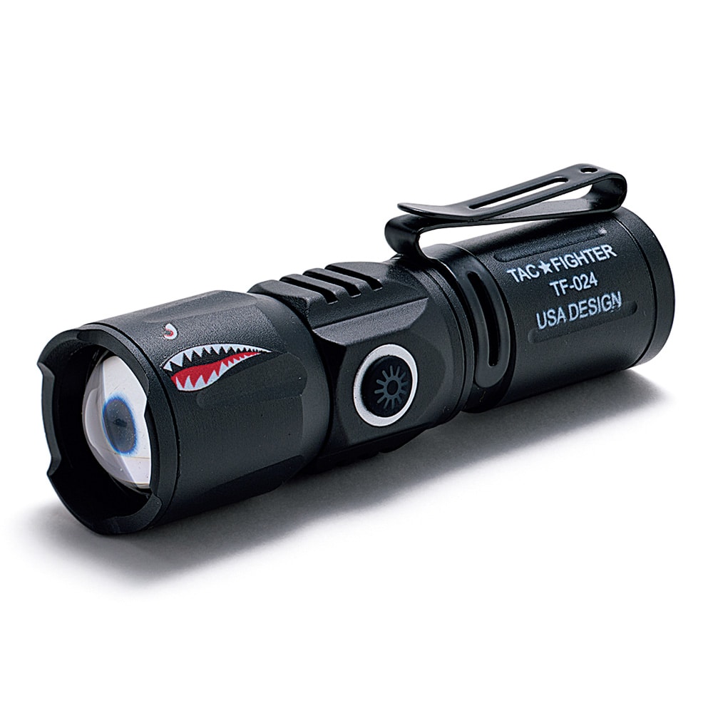 アメリカのカーペンター(大工職人)の意見を取り入れたミニライト。暗い場所で細かい作業ができるよう光量は最高900ルーメン。獰猛なほどにパワフルで、ボディーに描かれたサメはダテじゃない。