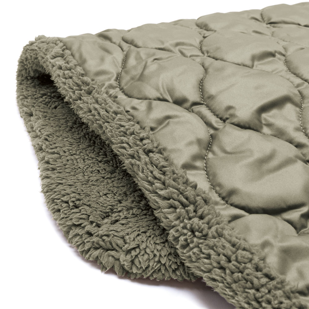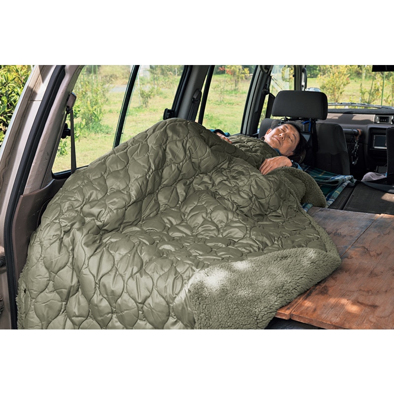 キャンプや車中泊を快適に過ごすために開発されたブランケット。毛足の長いボアと撥水性のあるシェルの間に4層の生地を挟み込み、熱放射を防いでいる。新素材“グラフェン”の遠赤外線効果によって、熱が高いところから低いところへ伝わり、ブランケット全体が暖まる仕様だ。溜め込まれた熱はアルミコーティングシートによって内に跳ね返される。メーカーの試験によると、マイナス15度Cの環境下で、55度Cの湯が3時間たっても40度前後に保たれたという。まさに魔法瓶のような保温力!サイズは2つあり、Lは車中泊の掛け布団として、S(別売り商品)はポンチョやひざ掛けにぴったり。どちらも収納袋が付いていて本体を詰めればクッションや枕として活用できる。
