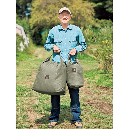 Lサイズの本体は約縦195×横138cm、約1780g。収納時サイズは約幅42×奥行き20×高さ45cm。いずれもポリエステル100%。洗濯機使用可(ネットを使用し、単独で洗濯)。すべて中国製。※難燃素材ではありません。引火や商品を傷める恐れがありますので焚き火や火気の近くでは使用しないでください。