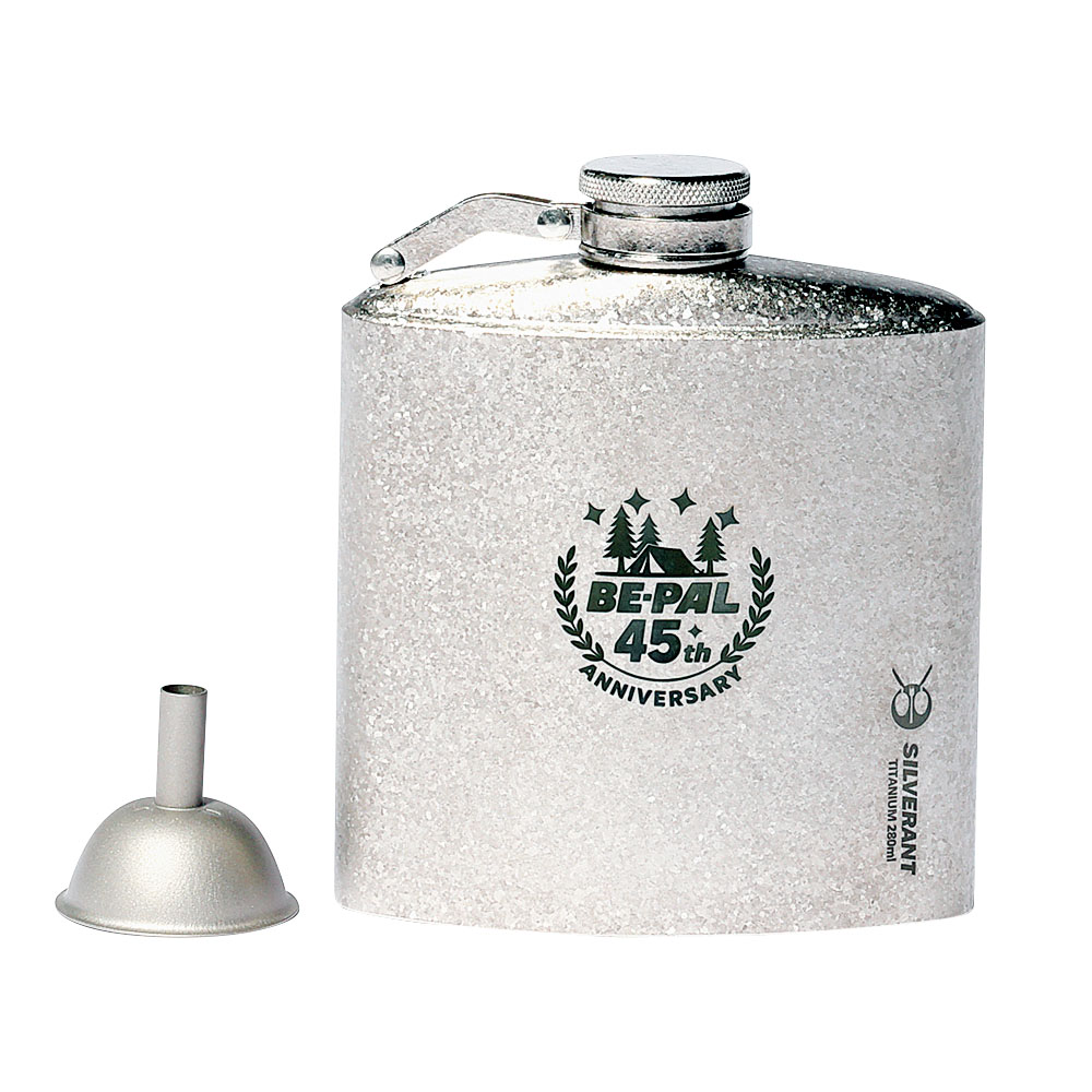 創刊45周年企画の第1弾!チタン専門ブランド「シルバーアント」のスキットルは、製造すると即完売するというプレミアム品だ。BE-PAL限定記念ロゴを刻印してお届けする。