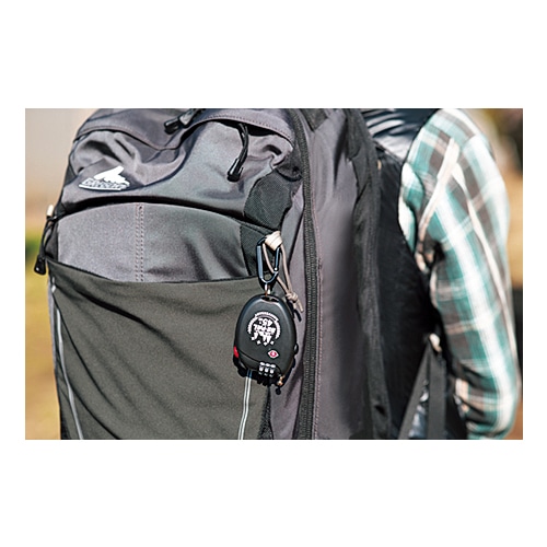 もちろん旅行にも有用。小型かつカラビナ付きで携行しやすく、バッグを置き引きから守るのに重宝する。TSA対応※だから海外旅行でも心強い。空港での保安検査の際に係員が専用ツールで解錠・再ロックできるため、鍵やバッグを壊される心配がない。表面に45周年の記念ロゴ入り。オリジナルな一品だ。