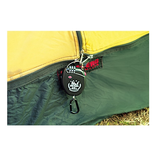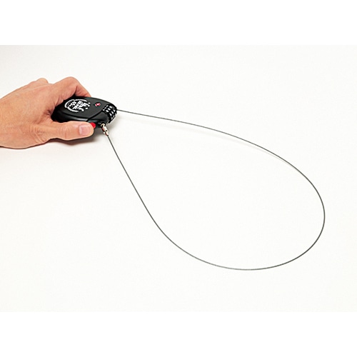 旅やキャンプにうってつけのコンパクトロック。ケーブルを伸ばすと最長73cmになり、荷物やギアをまとめて固定できる。チェーン式と違って細いので、テントのファスナーヘッドに通して出入り口をロックすることも可能。ダイヤル式だから鍵を失くす心配もない。