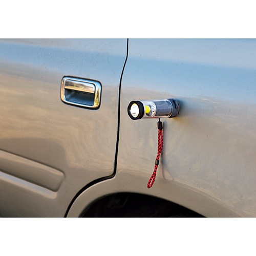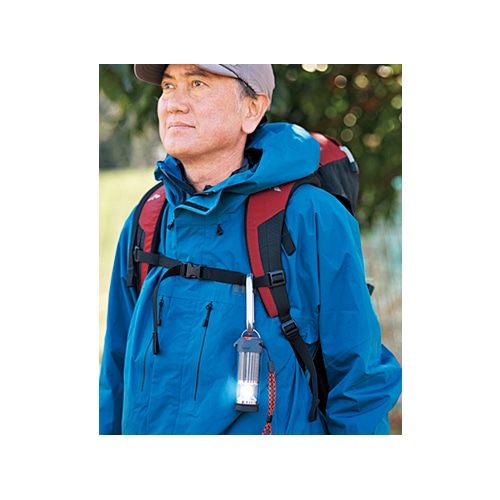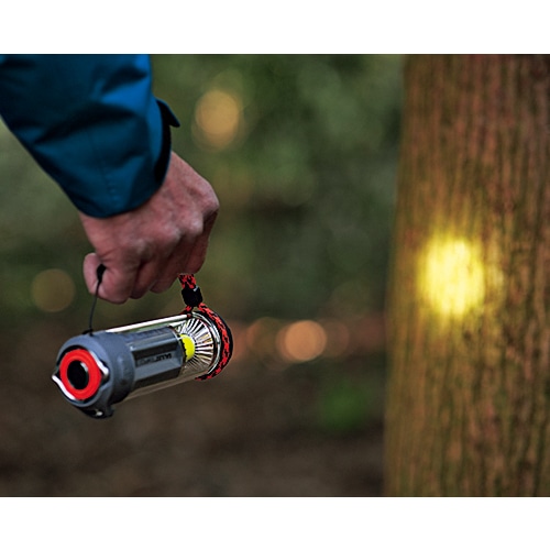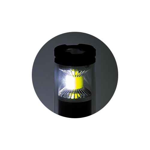 アメリカのハイスペックライトが上陸。ランタンはCOBタイプ※のLEDを採用。一基盤に多くのLEDを配して面で発光させる。まんべんなく広範囲を照らし、最高350ルーメンの数値以上に明るく感じられる。上部のスポットライトは遠くを照らせ、最長112m先まで光が届く。水深1mに30分沈めても浸水しないレベルの防水性も驚き!