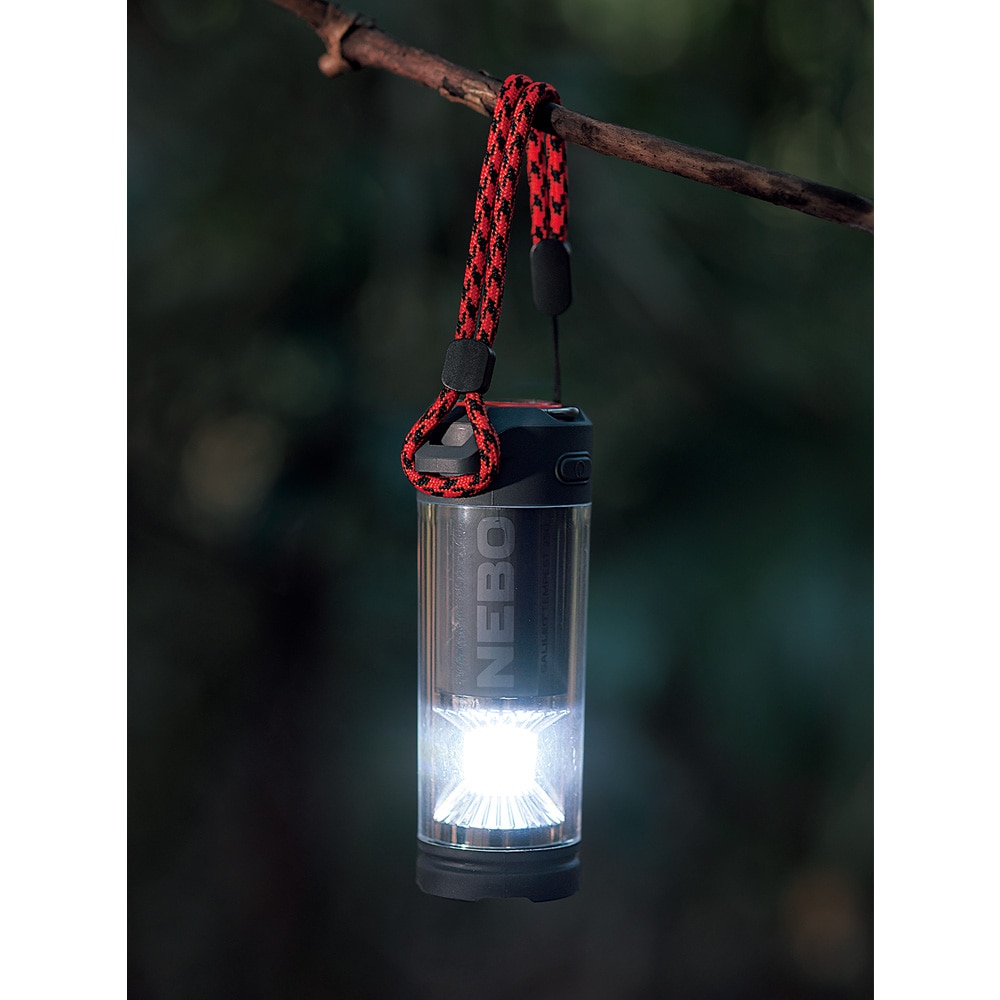約直径5.5×高さ12cm、約113g(電池を除く)。ABS樹脂ほか。単3形アルカリ乾電池3本、ストラップ、日本語取扱説明書が付属。電源は単3形アルカリ乾電池3本。ライトモードは360°照射、120°照射、スポット、赤色の4種×ハイ・ロー2種で計8種類。持続時間は約6時間~60時間、照射距離は2m~112m(モードにより異なる)。調光機能、直前設定記憶機能、赤色ライトへの直接切替機能(消灯時電源ボタン長押し)、底面マグネット、吊り下げ用フックあり。防水性能等級はIPX7。中国製。※光源を直視したり、長時間見続けたりしないでください。