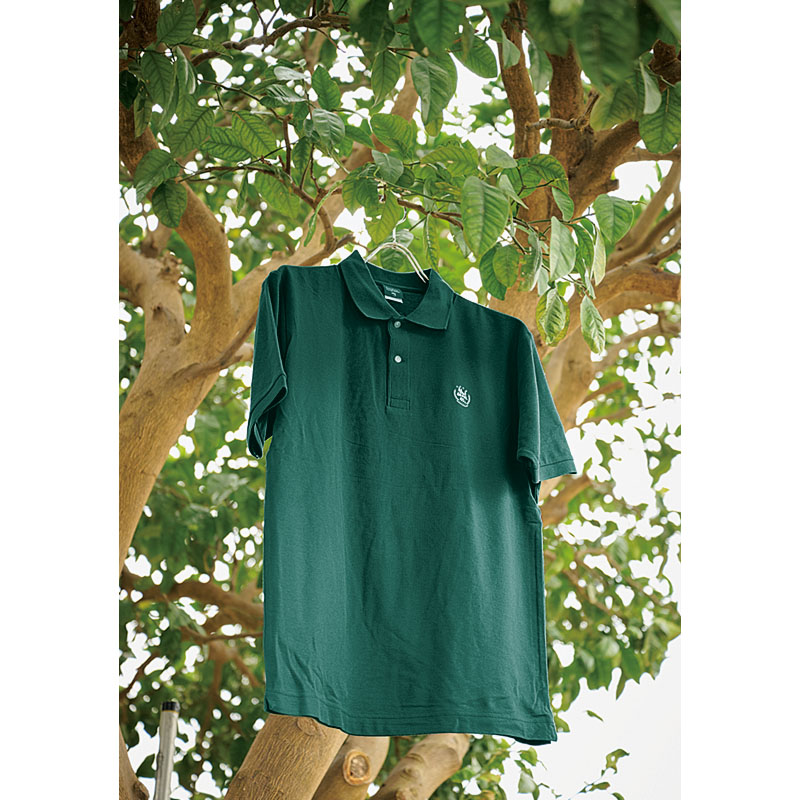 シカの子のまだら模様に似ているから“鹿の子”生地。表面に凸凹があり、ベタつかず通気性が良い。吸水速乾性にも優れているポロシャツだ。生地はポリエステル入りで、なおさら乾きやすい。UPF20の紫外線カット性能も備えている。