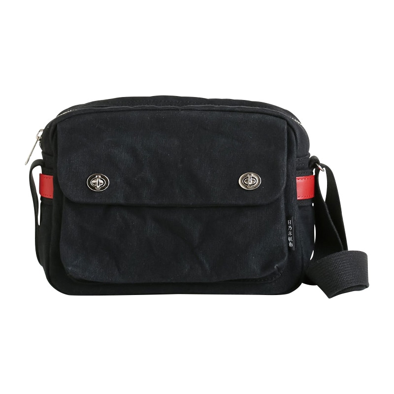 本品はパラフィン撥水加工を施した帆布に牛革を組み合わせた、オーソドックスで飽きのこないスタイル。フロントのフラップは「ひねり金具」で留めてあるので、不意に開くことがなく安心だ。