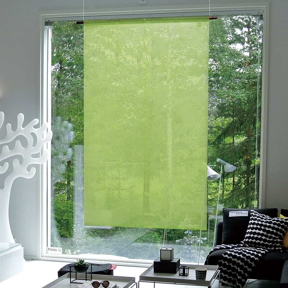 京都に伝わる伝統的な染め技法で作る、暖簾専門ブランド「万葉舎」の麻暖簾は、麻布の透け感を活かした軽やかな風合いと鮮やかな色合いが特徴。視線や日差しを遮りながら、その自然な透け感のおかげで閉塞感がなく快適だ。
