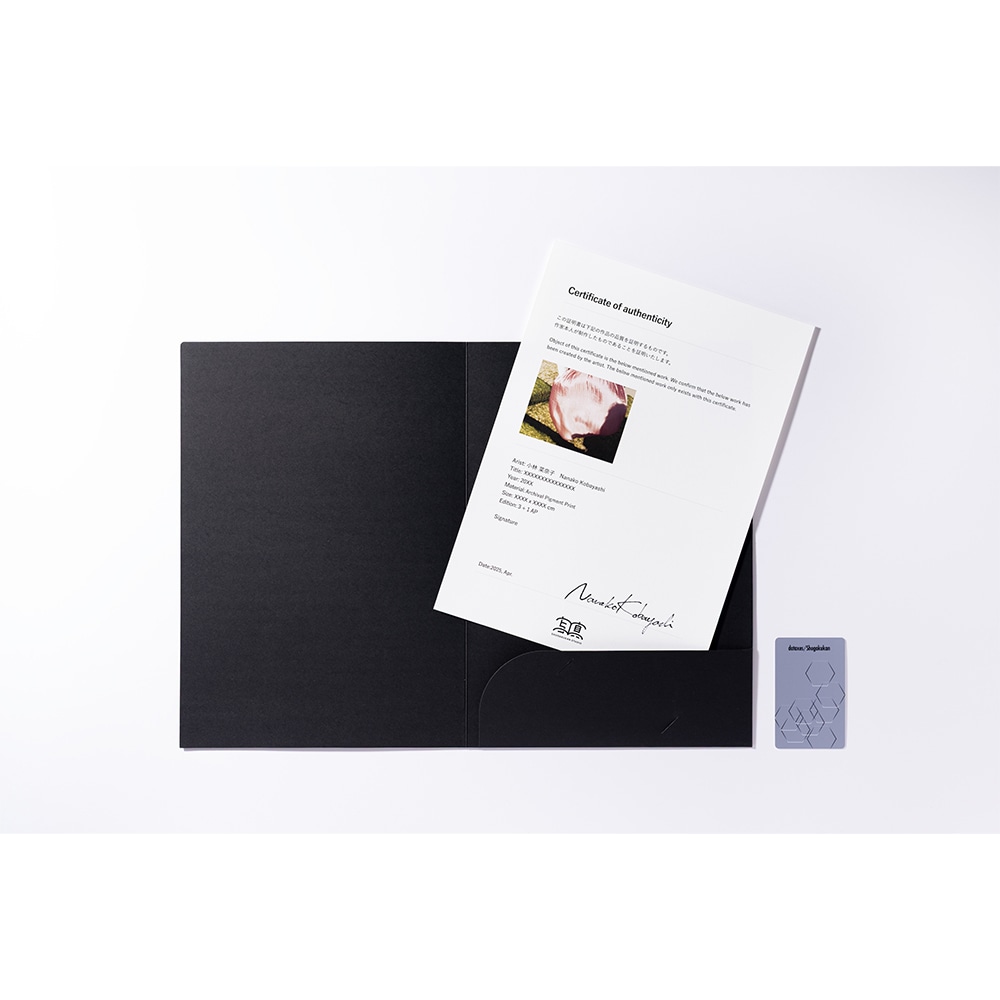 アーティスト発行の『作品証明書 Certificate of Authenticity』(黒いファイル内の証明書)を同梱いたします。