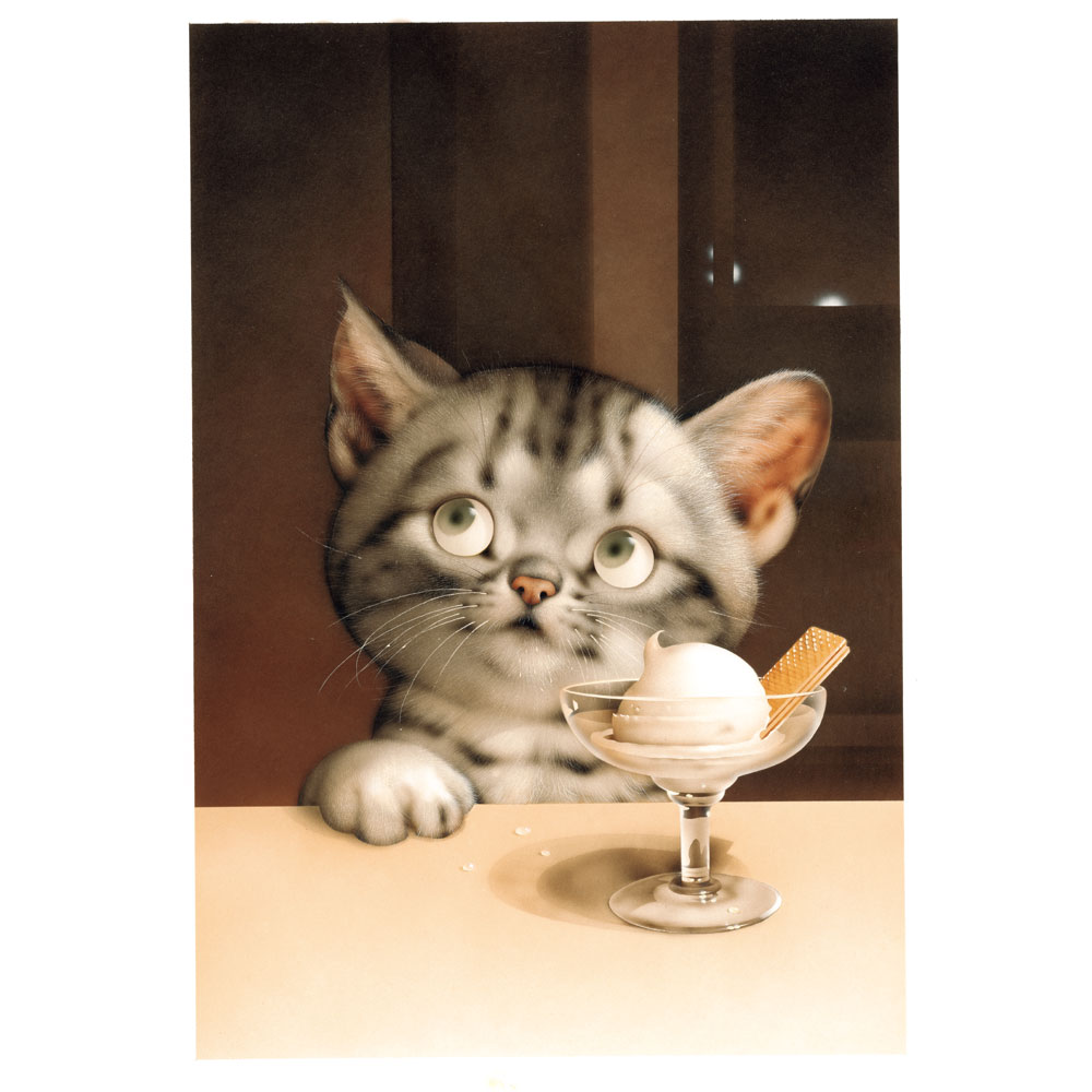 繊細に表現された、愛くるしい表情としぐさの猫たち。