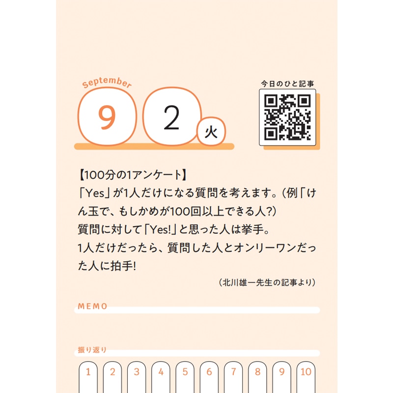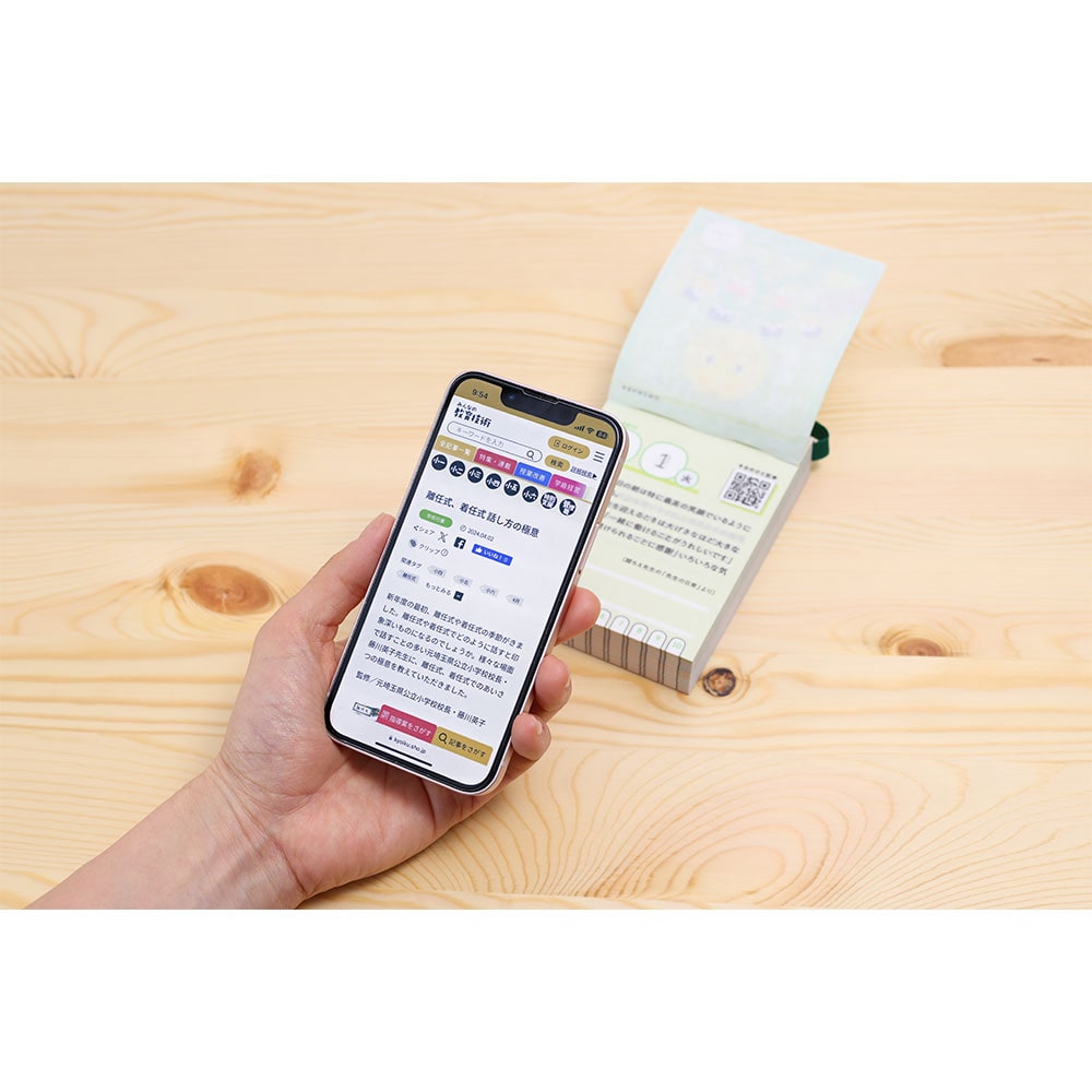 1日ひとつ、子どもと向き合うのがますます楽しくなる「前向きコトバ」と、その日におすすめの記事リンクを二次元コードで印字しています。