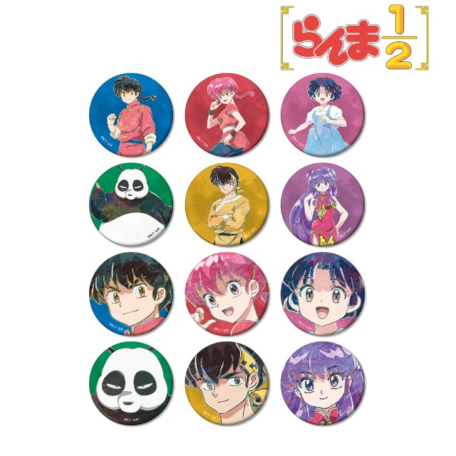 早乙女乱馬、らんま、天道あかね、早乙女玄馬、響 良牙、シャンプーのイラストを新たなタッチで魅力的に表現し、マットな手触りの缶バッジに仕上げました。