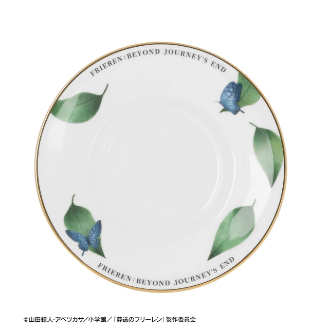 フリーレンの旅のお供でもある大きなカバンと青い蝶がポイントの、日常使いしやすいデザインのカップ&ソーサーです。
