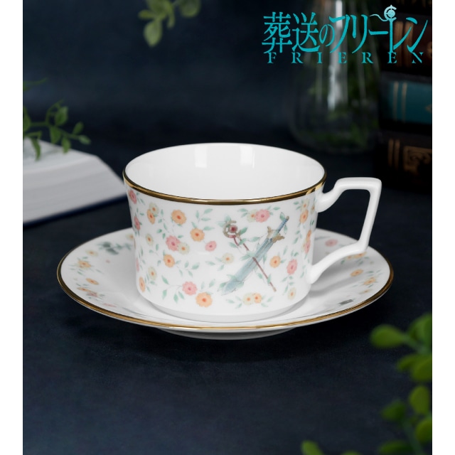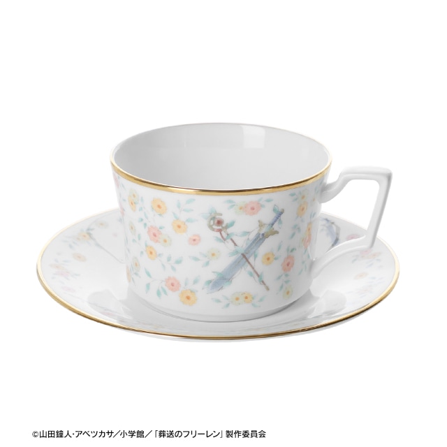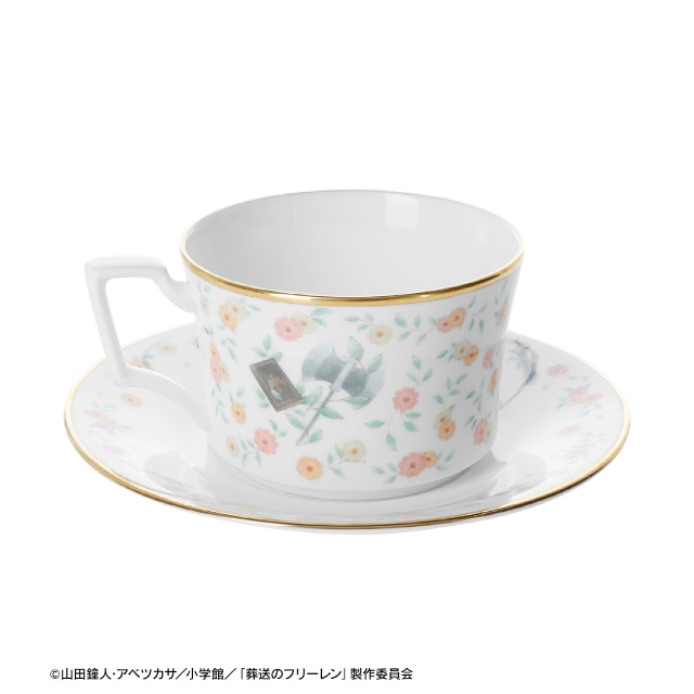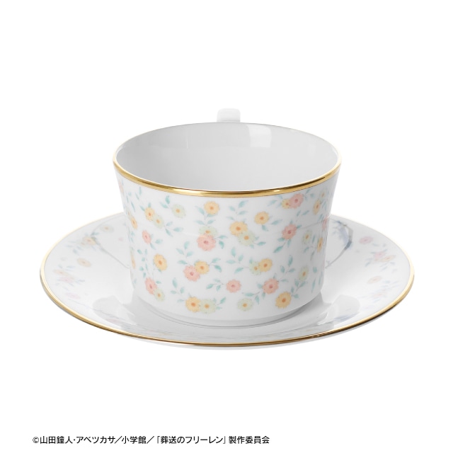 フリーレンが第二話で見せた花畑を出す魔法をイメージした、日常使いしやすいデザインのカップ&ソーサーです。