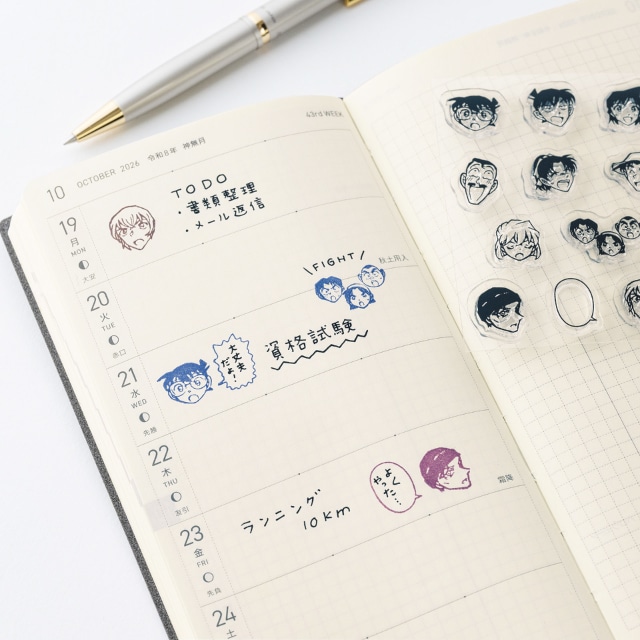 予定や日記などの内容に合わせた表情を選べば、その日の手帳がよりにぎやかに。