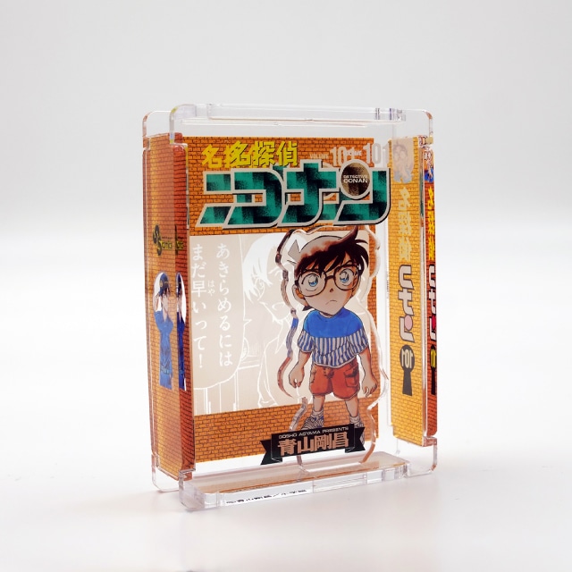 単行本をモチーフにデザインしたアクリルボックスの中には、各巻の表紙イラストになっている「江戸川コナン」のアクリルスタンドが入っています!