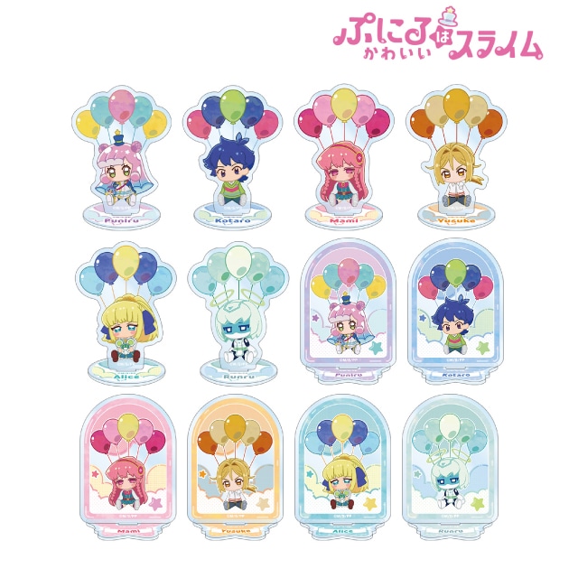 ぷにる、河合井コタロー、雲母麻美、南波遊助、御金賀アリス、ルンルのイラストをお空に風船でぷかぷかと浮いたぬいぐるみをイメージして描き起こし、アクリルスタンドに仕上げました。